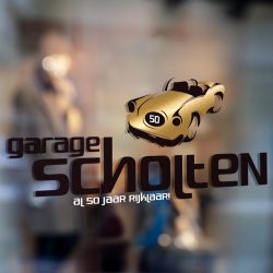 Garage Scholten bestaat dit jaar 50 jaar! Speciaal voor dit jubileum ontwierpen we bij lekker in vorm een glamoureus jubileumlogo; de rode auto wordt tijdelijk vervangen door een gouden variant met 50 op de grill en vergezeld van de pay-off “al 50 jaar rijklaar” .