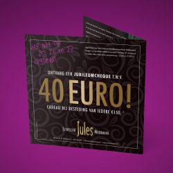 Kom langs tijdens het jubileumweekend van Juwelier Jules Moormann en ontvang een cheque t.w.v. €40,- cadeau bij besteding van iedere €150,-.