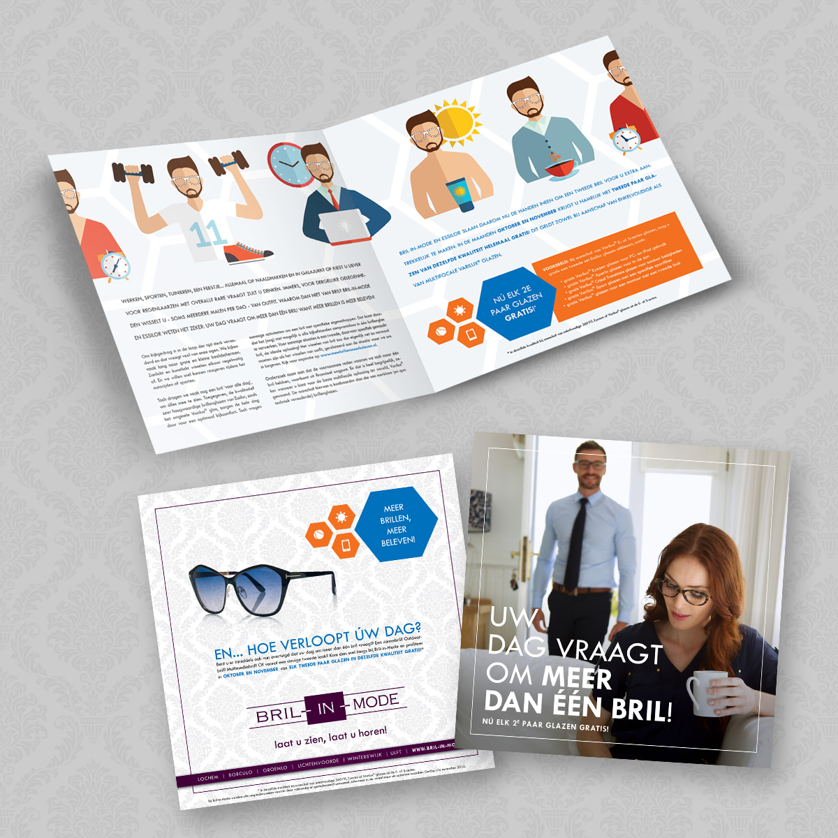 Werken, sporten, tuinieren, een feestje… allemaal op naaldhakken en in galajurk? Of kies je liever voor regenlaarzen met overall? Rare vraagt zul je denken. Immers, voor dergelijke gelegenheden wissel je – soms meerdere malen per dag – van outfit. Waarom dan niet van bril? Bril-in-Mode en Essilor weten het zeker: je dag vraagt om meer dan één bril! Want meer brillen is meer beleven!