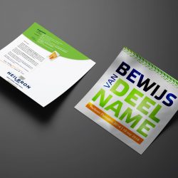 Vervolgens ontvingen relaties na inschrijving alvast een mooi glimmend bewijs van deelname (gedrukt op spiegelend Magic Chrome papier) met daarop alle relevante gegevens. Tot slot ontwierpen we nog de cheque die na de clinic overhandigd kon worden aan Stichting Inloophuis Oude IJssel.
