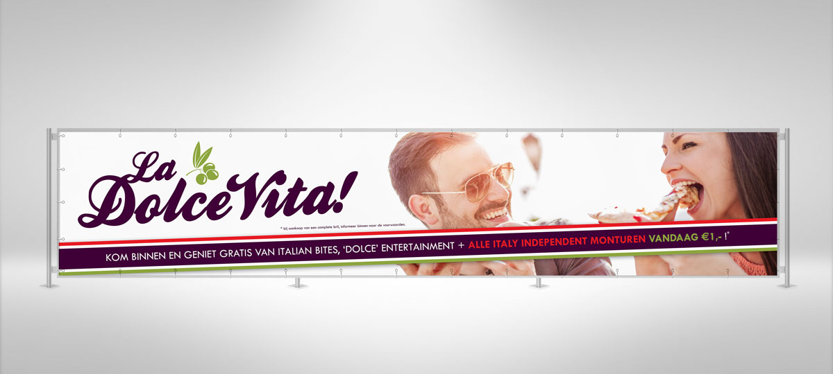 Op iedere eerste koopzondag na Sinterklaas viert heel Lichtenvoorde ‘Let it Snow’. Dit jaar gaat bril-in-mode independent: Koop je deze dag een Italy Independent bril dan kost het montuur slechts €1,-. lekker in vorm maakte alle campagne-items, waaronder een strooiflyer, gevelbanner, stoepbordposter en advertentie.