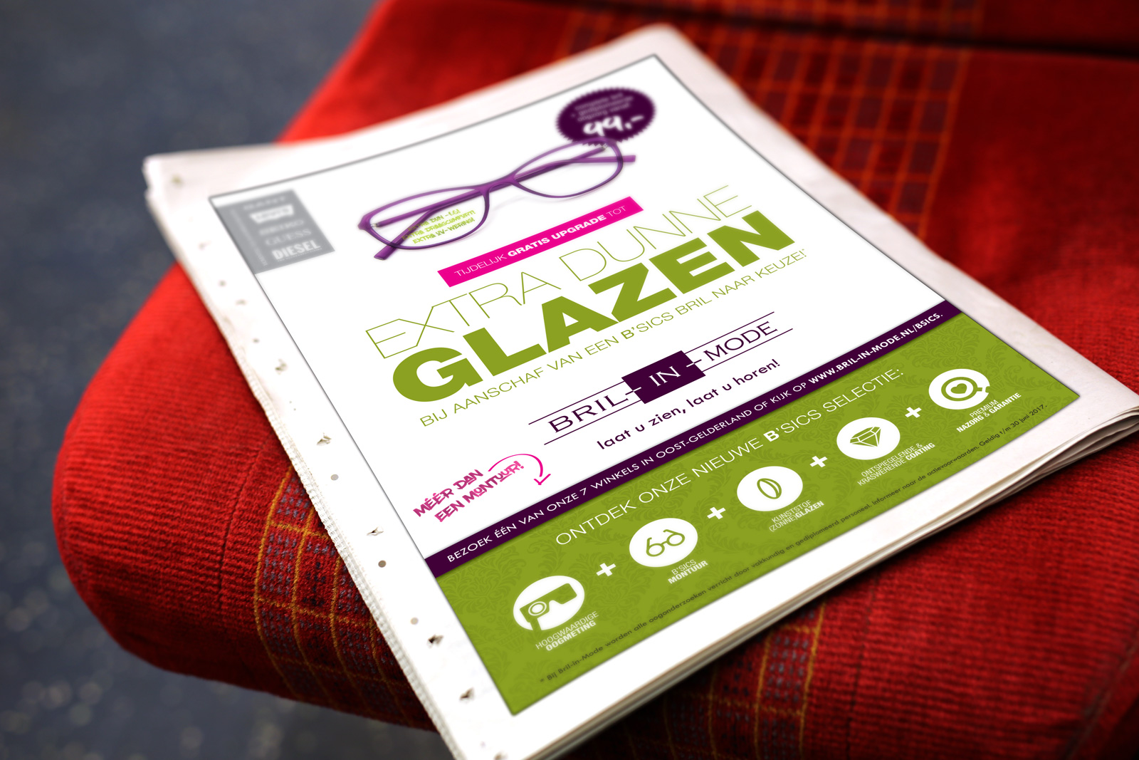 Om de nieuwe collecties B’SICS monturen van Bril-in-Mode stevig te introduceren bij het publiek, schreven we er bij lekker in vorm niet alleen een artikel over in het magazine RETINA, maar ontwikkelden we ook een stevige introductiecampagne.