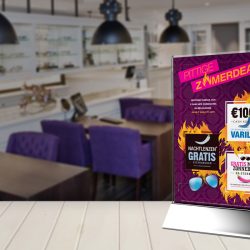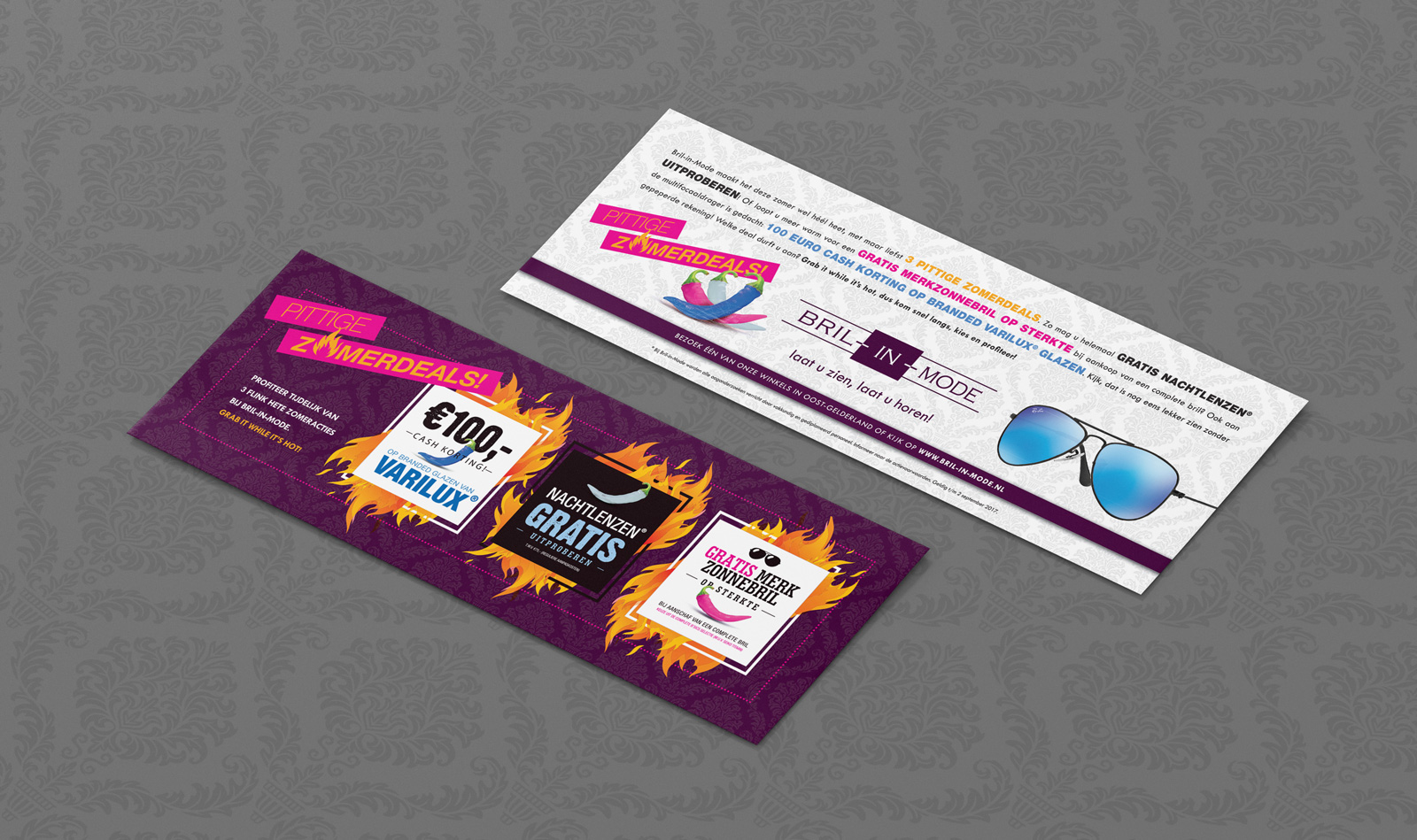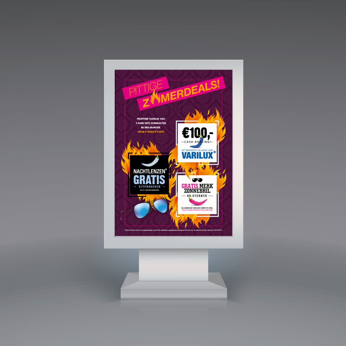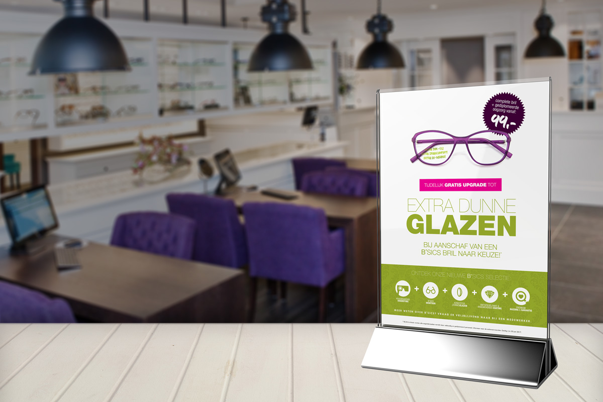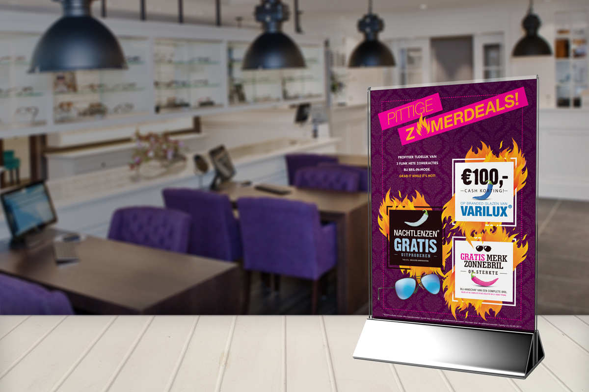 Met een drieluik dat huis aan huis verspreid werd in het servicegebied van de opticien, een advertentie en diverse items in en rondom de winkel en online. Daarnaast zie je hierboven de bijbehorende reclamespot die we gemonteerd hebben voor narrowcasting op Optiek TV en als pre-roll op TV8.