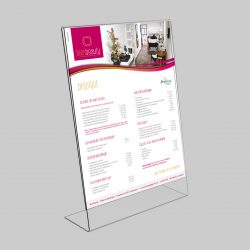 lekker in vorm maakte een sfeervol posterontwerp met herkenbare huisstijlelementen en daarna ook een bijpassend topbord in de vorm van een pijl, waardoor de salon voor niemand meer te missen is.