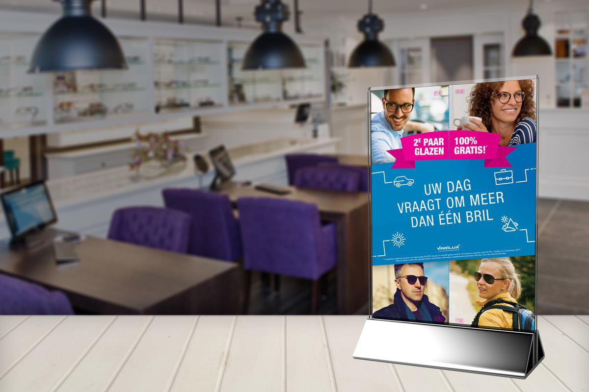 Om dit onder de aandacht te brengen voeren Bril-in-Mode en Essilor ook dit jaar weer een campagne, met de titel: Uw dag vraagt om meer dan één bril! Met tijdelijk we een scherp aanbod: 2e paar glazen helemaal gratis, voor een tweede bril in de categorie autorijden, multimedia, zon of outdoor.
