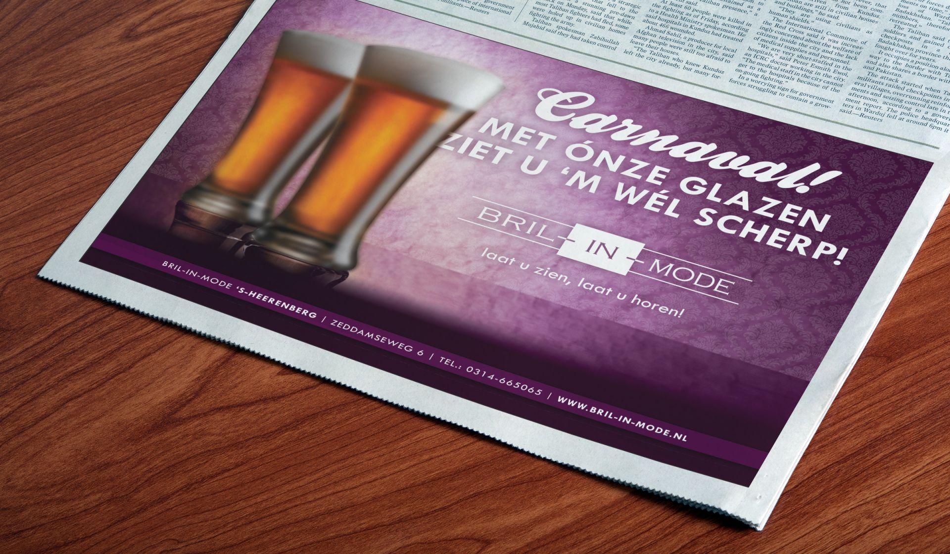 Alaaf! Speciaal voor komende carnaval ontwikkelde lekker in vorm voor Bril-in-Mode een inhakende advertentie met een knipoog.