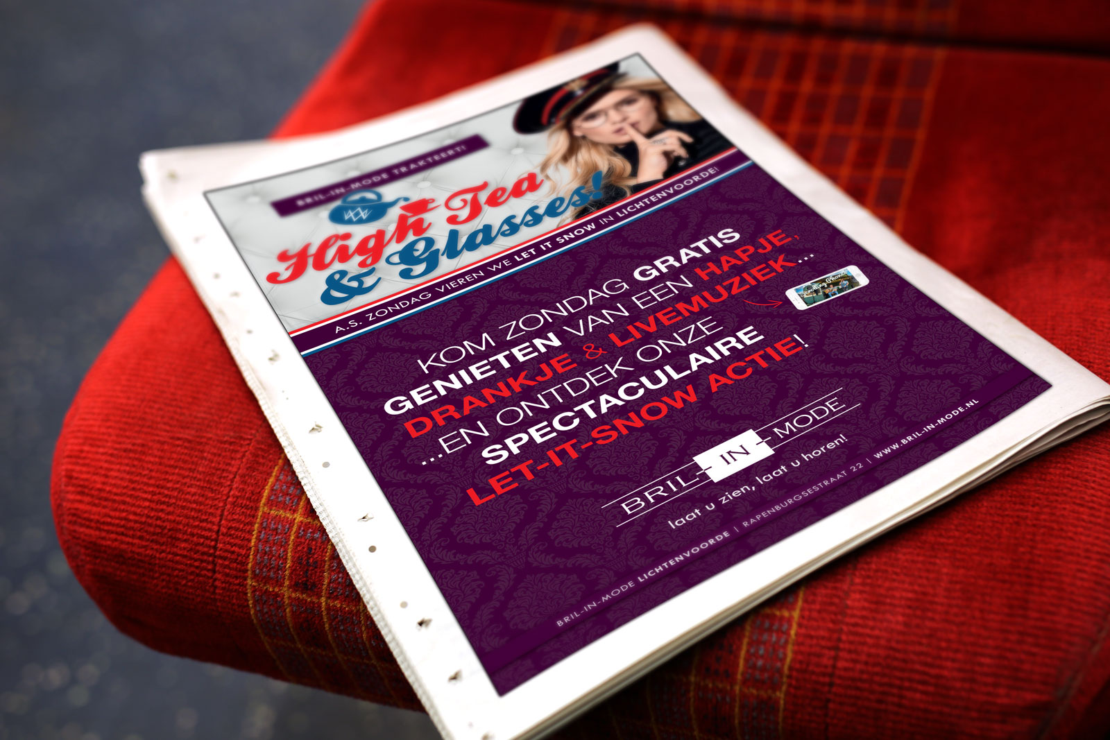 Go British! Dit jaar staat Let it Snow (bij Bril-in-Mode Lichtenvoorde in het teken van High Tea & Glasses: koop je er vandaag een William Morris montuur dan betaal je slechts €1,-! En of dat al niet gezellig genoeg is, wordt er ook nog high tea & English beer geschonken onder het genot van live muziek! Snel naar Lichtenvoorde dus.