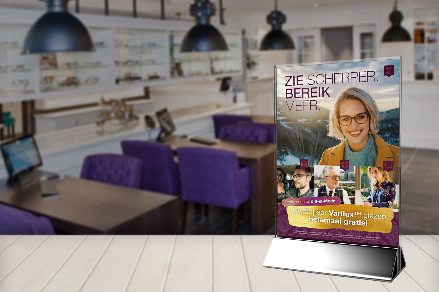 Wat je ook onderneemt op een dag, je wilt natuurlijk niet gehinderd worden door verminderd zicht. Varilux multifocale brillenglazen bieden je op alle afstanden scherp zicht, ongeacht je dagelijkse bezigheden. Toch zijn er ook Varilux brillenglazen die je heel gericht ondersteunen tijdens specifieke activiteiten. Denk hierbij bijvoorbeeld aan autorijden of computeren. Met de juiste bril voor elke activiteit haal je het beste uit je dag. Bril-in-Mode informeert je graag over de beste brillenglazen voor je dagelijkse bril én voor je tweede bril. Tijdelijk ontvangt je zelfs je tweede paar glazen helemaal gratis!
