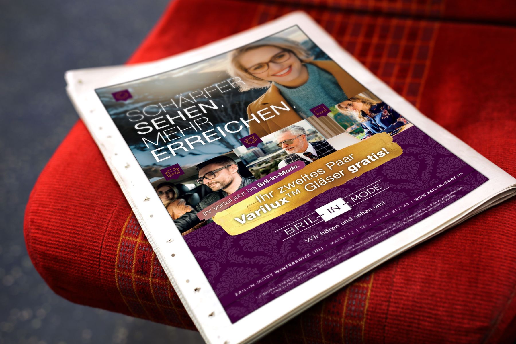 Voor deze doelgroep mag Bril-in-Mode natuurlijk niet ontbreken als sponsor. Wij maakten bij lekker in vorm daarom een passende imago-advertentie voor in het programmaboekje.