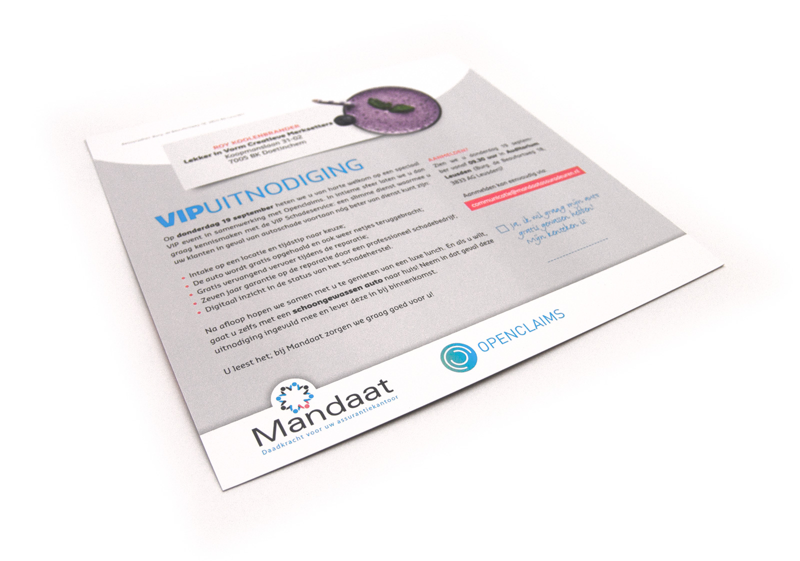 Tijdens een speciaal VIP event van Mandaat kunnen assurantiekantoren kennismaken met de speciale VIP schadeservice van OpenClaims: een slimme dienst waarmee zij hun klanten in geval van autoschade nog beter van dienst kunnen zijn.
