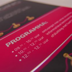 Bij lekker in vorm mochten we voor dit event een chique uitnodiging ontwerpen. We kozen voor extra dik 400 grams papier, afgewerkt met zowel een matlaminaat als zilverkleurige foliedruk. Voor de finishing touch werd elke uitnodiging gepersonaliseerd.