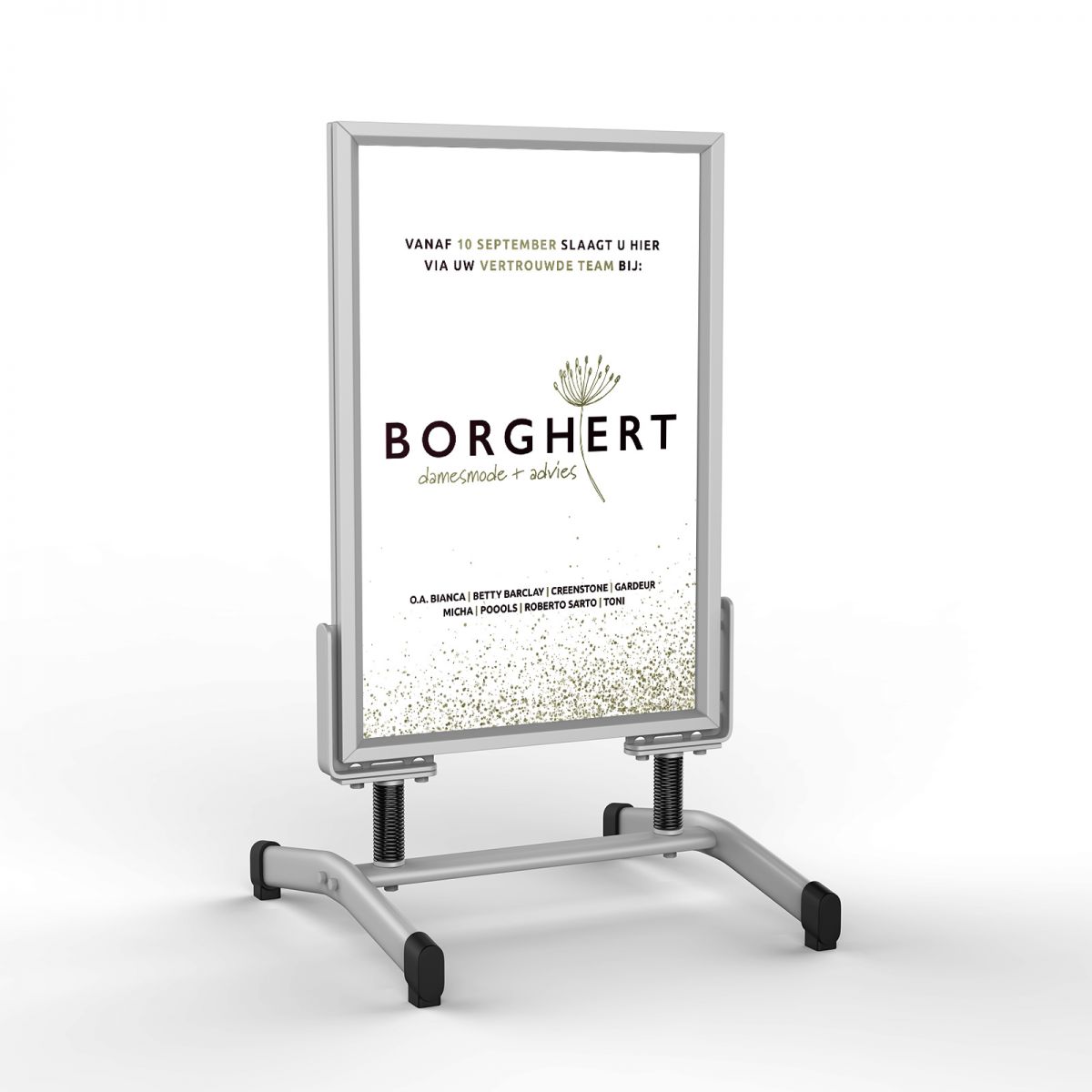 Om de opening van Borghert damesmode + advies extra reuring te geven ontwierpen we bij lekker in vorm een kleine maar opvallende IM’er en zorgden we voor plaatsing ervan op de voorpagina van de Gelderlander.