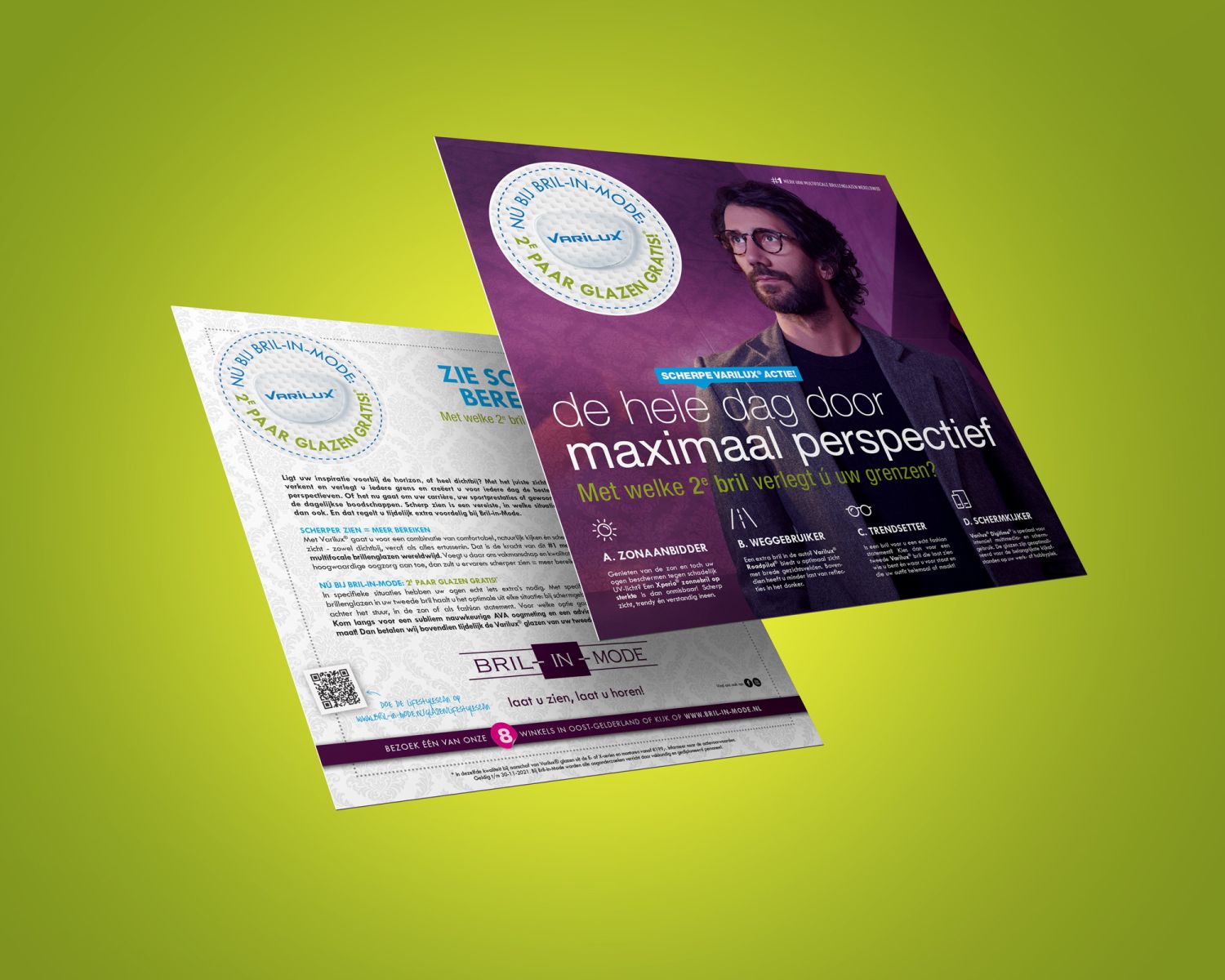 Bij lekker in vorm ontwierpen we deze Varilux campagne, bestaande uit een direct mailingkaart, huis-aan-huis flyer, advertentie en diverse items in en rondom de winkel en online.