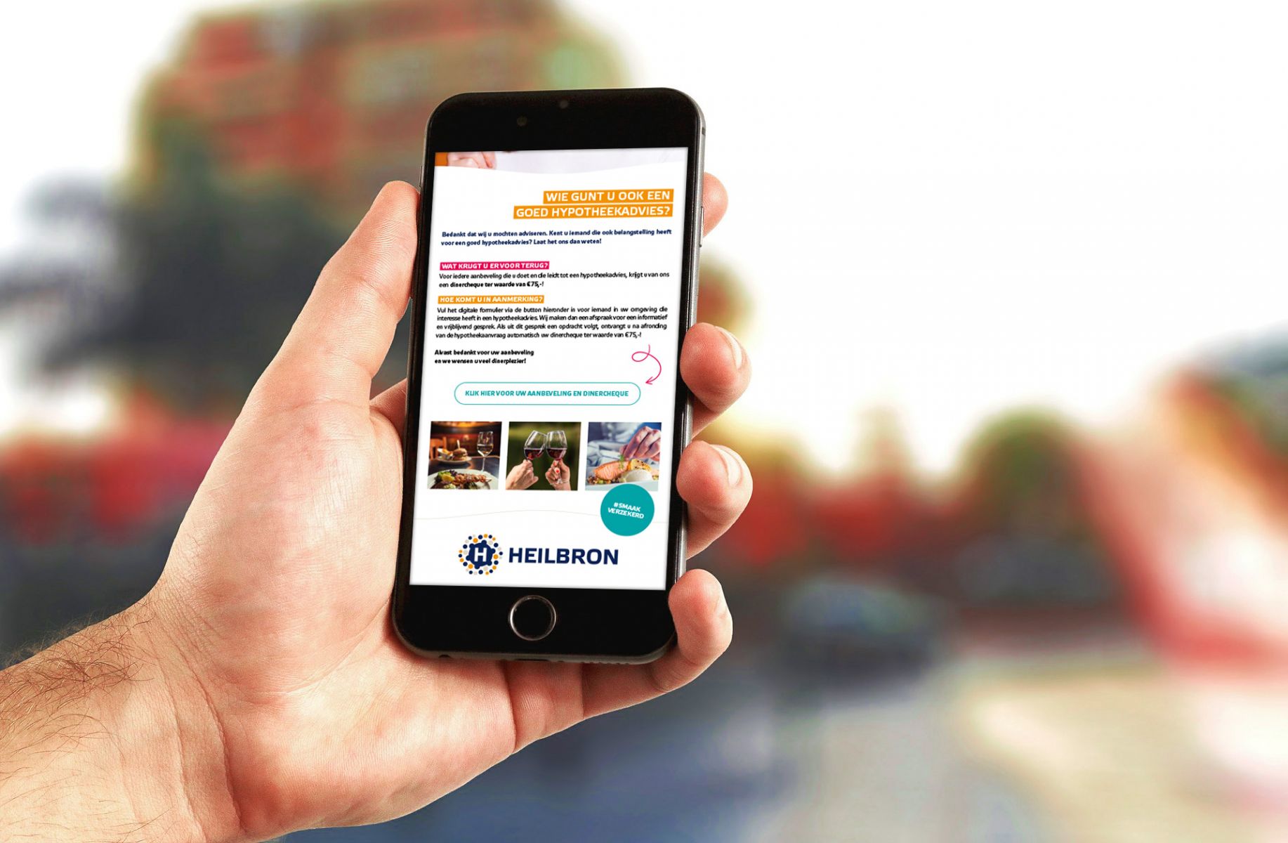 Smaak verzekerd! Vanwege het succes gaat Heilbron ook in nieuwe stijl verder met haar dinercheque actie voor tevreden hypotheekklanten. Bij lekker in vorm goten we de bestaande actie niet alleen in een nieuw huisstijljasje, maar ook zetten we deze gelijk om in een digitale versie die een groter gebruiksgemak kent dan de papieren folder: een makkelijk te mailen pdf met een aanklikbare link naar een online formulier.