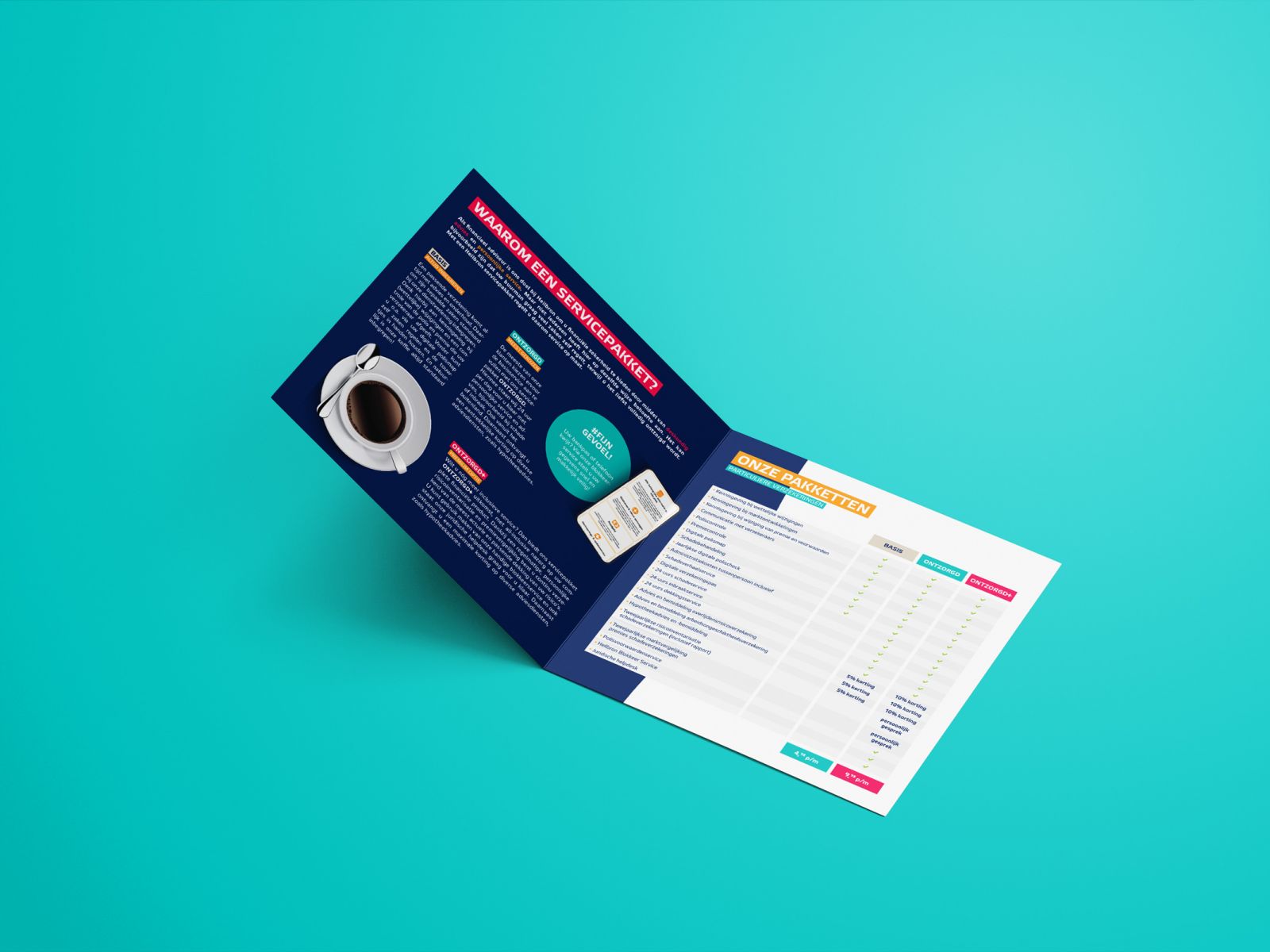 Als financieel adviseur heeft Heilbron als doel financiële zekerheid te bieden door middel van deskundig advies en persoonlijke service. Maar niet iedereen heeft hier op dezelfde wijze behoefte aan. Met een Heilbron servicepakket regelt u daarom service op maat. Om de keuzes duidelijk weer te geven maakten we bij lekker in vorm deze folder met daarin o.a. een overzichtelijke tabel.