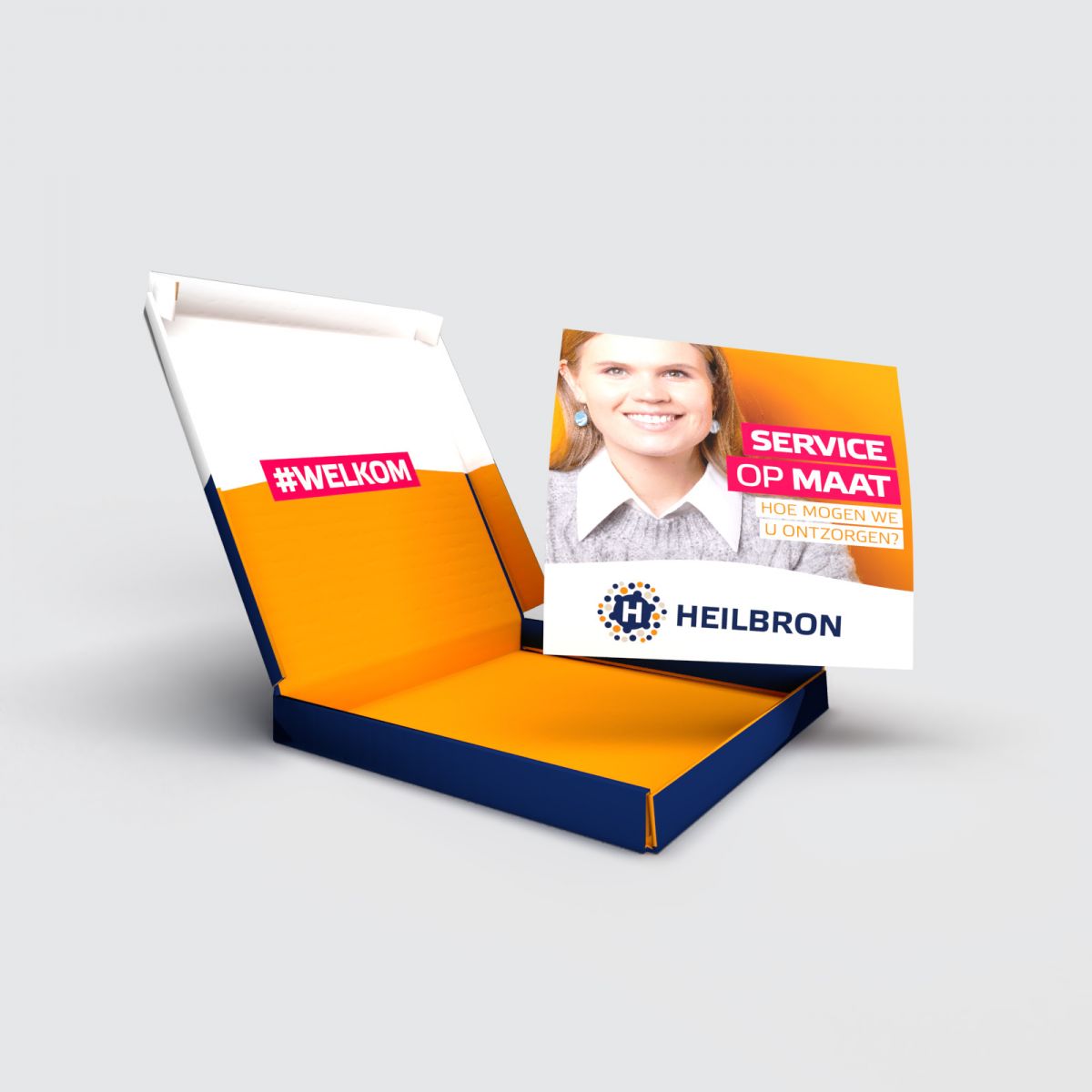 Kiest u bij Heilbron voor een ontzorgt+ pakket dan hoort daar ook een sleutelservice bij. Bij lekker in vorm mochten we het welkomstdoosje daarvoor mooi vormgeven met daarin de sleutelhanger, de folder servicepakketten particulier en de algemene voorwaarden.
