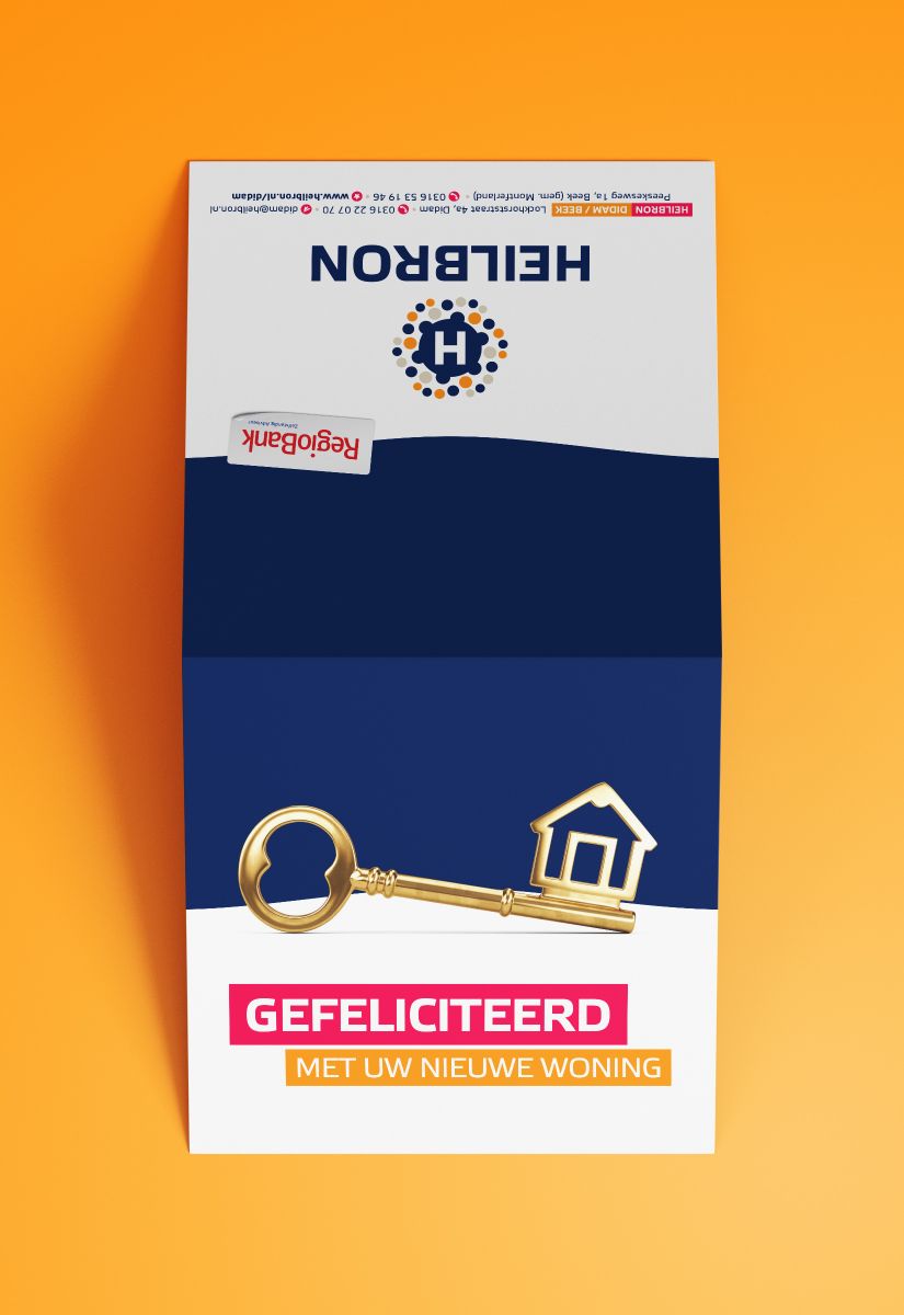 Is het afsluiten van je hypotheek gelukt? Dan doet team Hypotheken van Heilbron je graag een giftcard cadeau om je te feliciteren. Bij lekker in vorm mochten we hier een feestelijke kaart voor ontwerpen. Het geheel is gedrukt op metallic papier met een bijpassende sprankelende envelop.