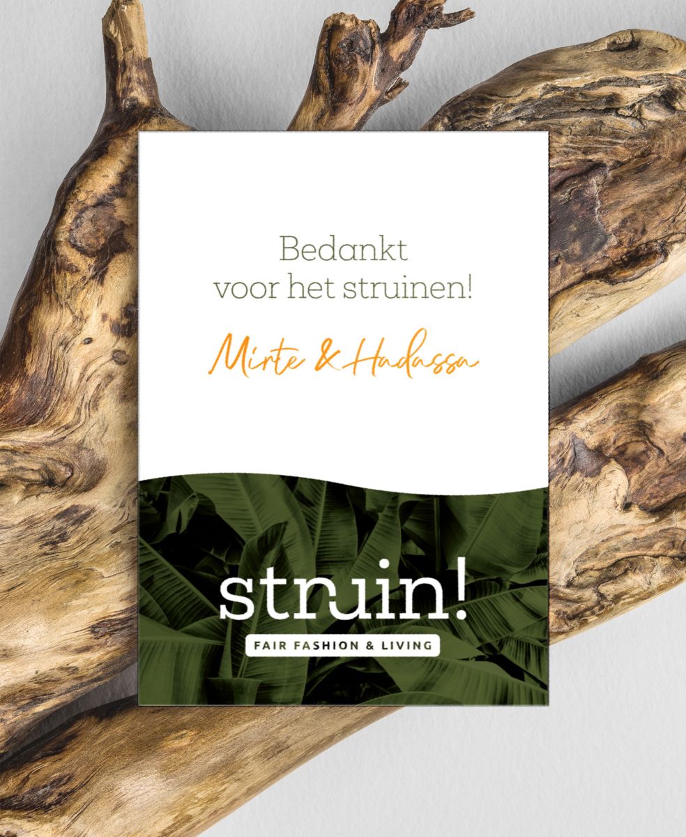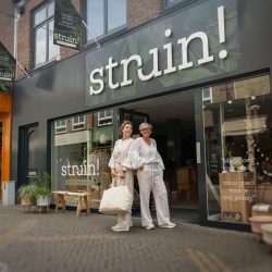 Begonnen als tijdelijke outlet is Struin! in de Boliestraat van Doetinchem nu een blijvertje! Daar hoort ook een update van de eerder ontwikkelde pandbelettering bij. De logosticker boven de deur hebben we daarom vervangen door luxe Acrylox letters op afstandhouders. Ook de vlaggen hebben een nieuw design en overal prijkt het logo met de nieuwe ondertitel fair fashion & living. Nu past alles buiten weer helemaal bij de hoogwaardige styling die Mirte en Hadassa steeds weer aan de winkel binnen geven.
