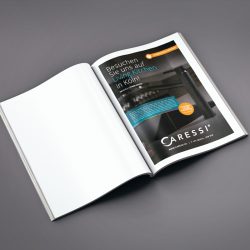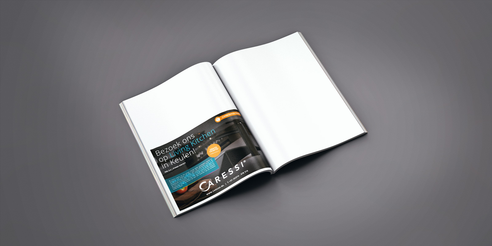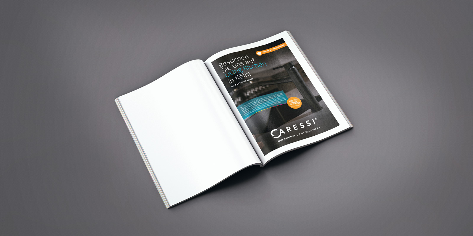 Caressi staat met een mooie stand op Living Kitchen in Köln. Om mensen uit te nodigen voor een bezoek, ontwierpen we bij lekker in vorm een reeks vakbladadvertenties in diverse formaten en talen.