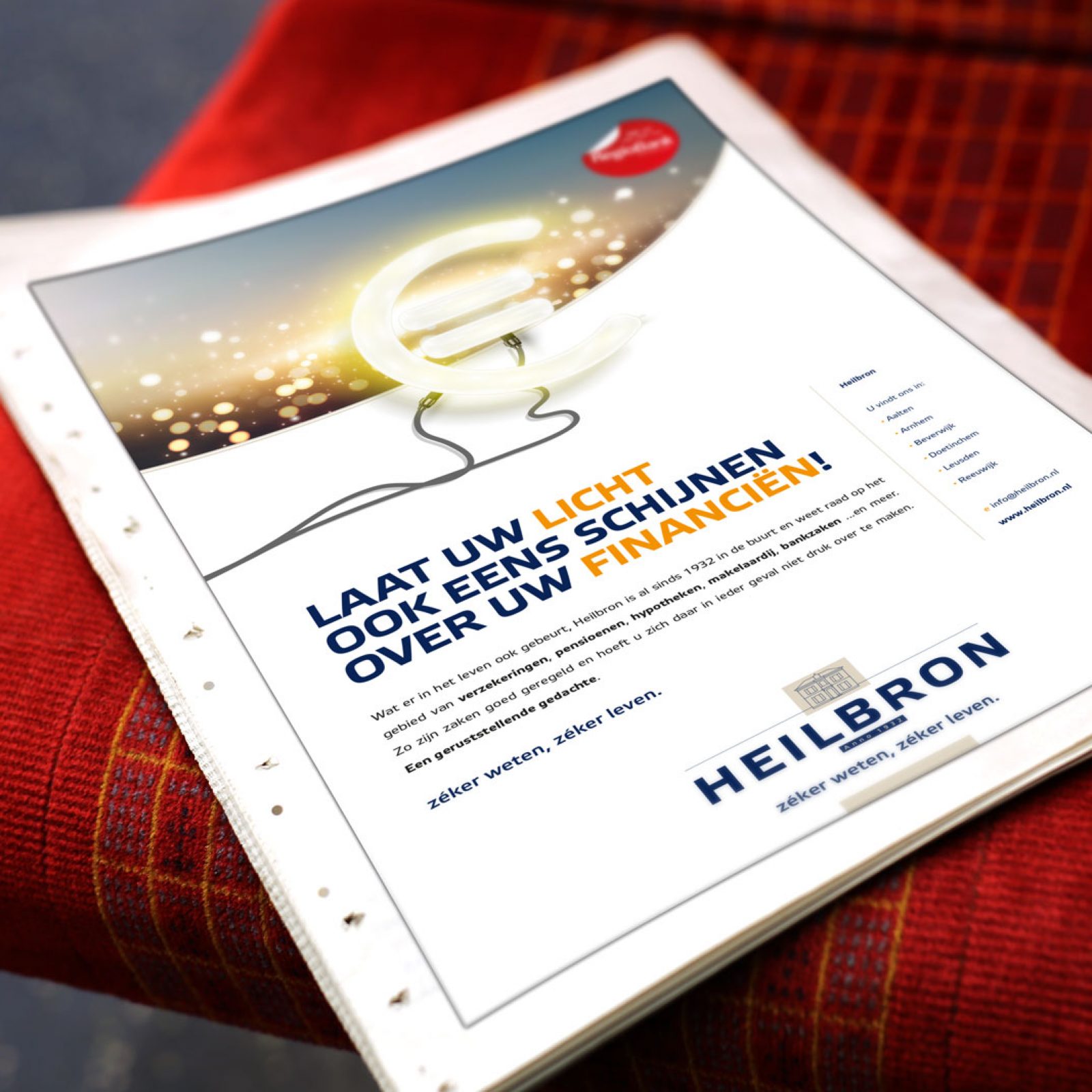 Heilbron wilde graag stralen met een advertentie in de themakrant van lichtfestival “Engbergen in Lichterlaaie” in Lichtenvoorde. Bij lekker in vorm ontwierpen we daarvoor een inhaker met de titel “Laat uw licht ook eens schijnen over uw financiën!”