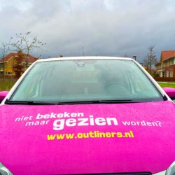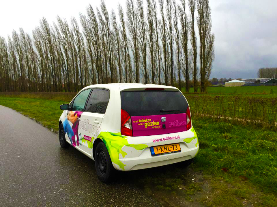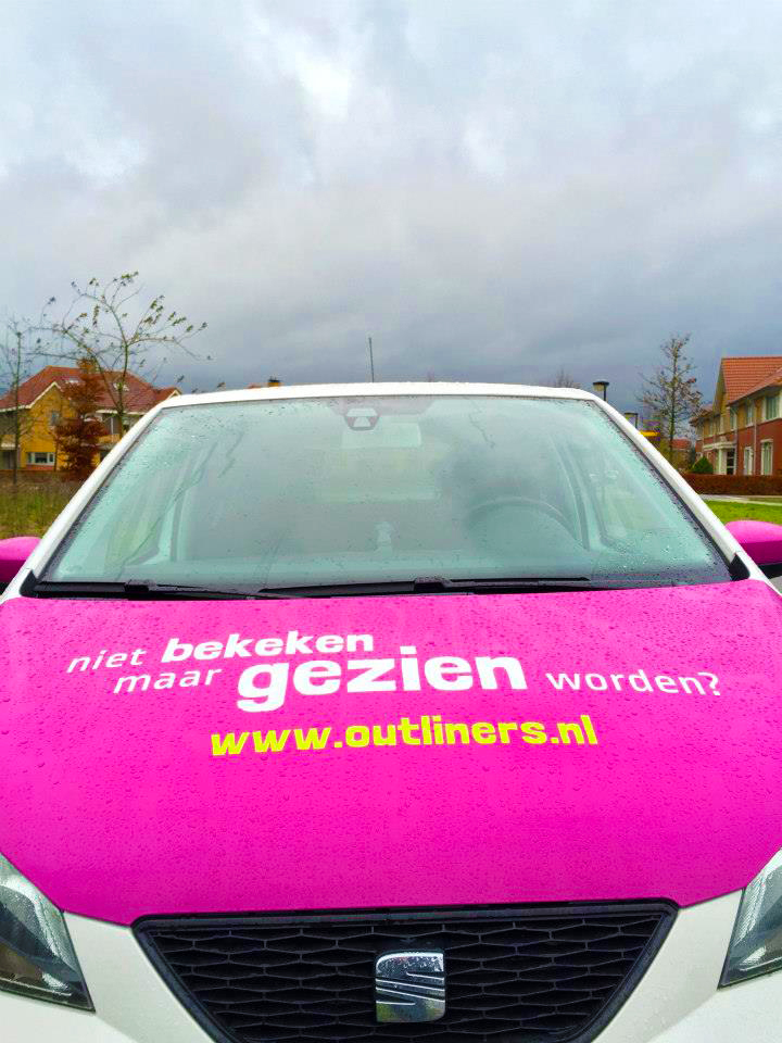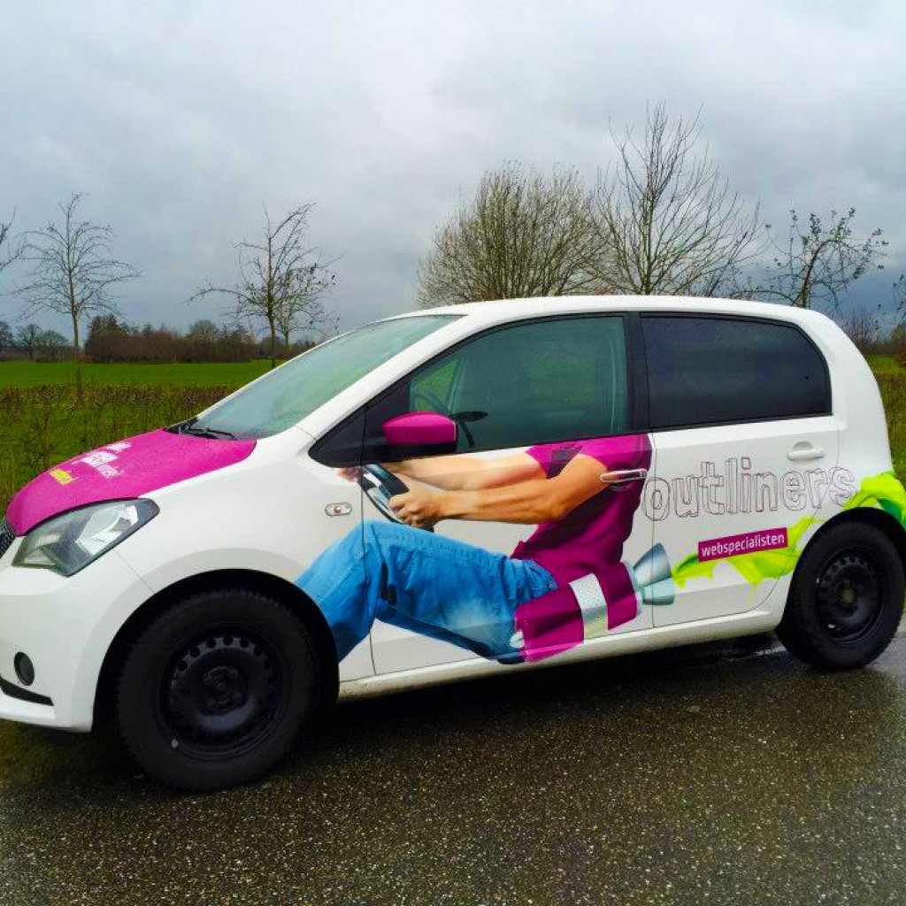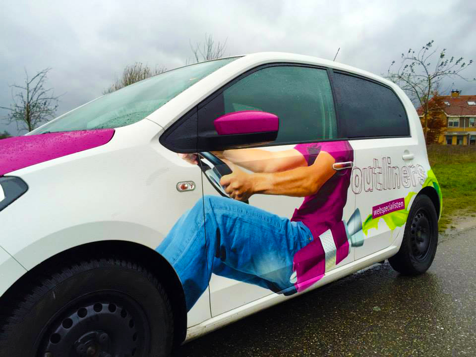 Sinds deze week rijden onze nieuwe buren van Outliners rond met een opvallende autobelettering. lekker in vorm mocht het ontwerp verzorgen voor de webspecialisten, aansluitend op hun pay-off “niet bekeken, maar gezien worden”.