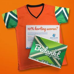Om klanten te bedanken voor de aankoop van hun gepersonaliseerde Achterhoekse Oranje T-shirt mochten we bij lekker in vorm een mooie bedankkaart ontwerpen en schrijven voor Hogenkamp Klompen & Souvenirs / klompjes.com. De kaart wordt meegestuurd bij de bestelling en is naast een dankwoord voorzien van een leuke actie om 10% korting te scoren door een leuke foto op social media te delen.