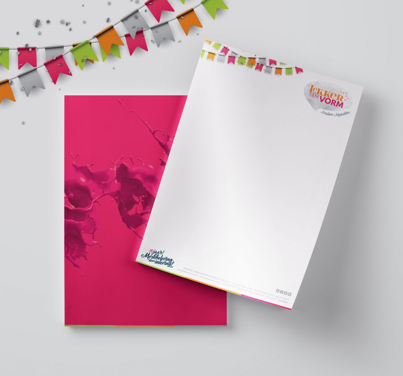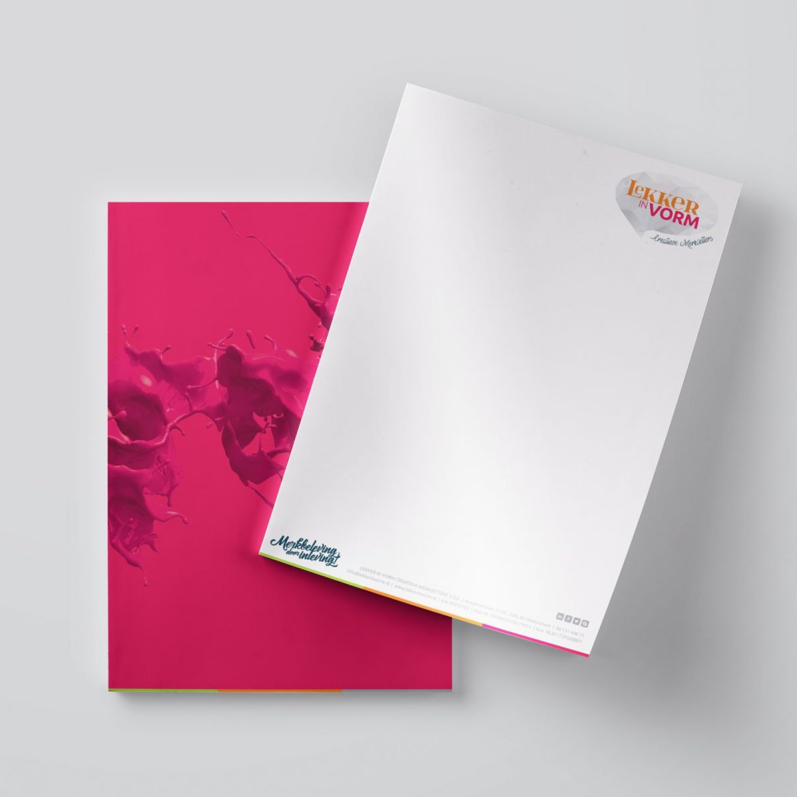 Hoewel het gros van onze communicatie digitaal is, beschikken we bij lekker in vorm toch graag over gedrukt briefpapier om iets per post te kunnen versturen of te presenteren. We hebben hierbij gekozen voor een dubbelzijdige bedrukking op lekker dik papier, voor een royaal gevoel.
