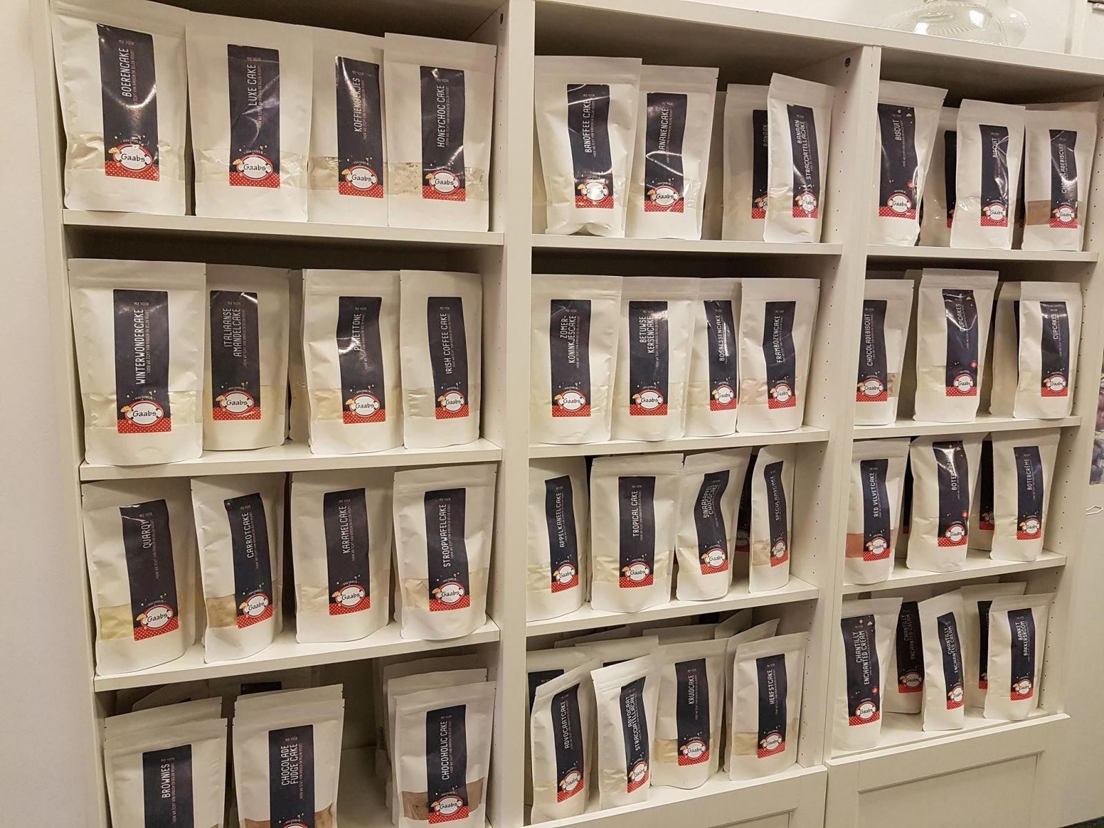 Bakwinkel Gaabs verkoopt voortaan kant-en-klaar bakmixen onder eigen label. De oude, paarse verpakkingen mochten daarom plaatsmaken voor iets nieuws. lekker in vorm voorzag de nieuwe matwitte zakken van een smakelijk, vrolijk etiket; vanzelfsprekend in lijn met de huisstijl. Ook de nieuwe koekjeslijn van Stichting Komt voor de Bakker kreeg in dezelfde lijn vorm.