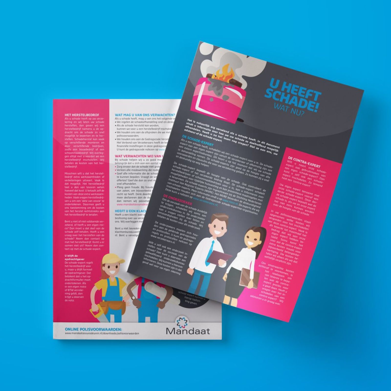 Schade is al vervelend genoeg! Daarom mochten we bij lekker in vorm in opdracht van Mandaat deze overzichtelijke flyer ontwerpen om klanten zo doeltreffend mogelijk te informeren over wat er komt kijken bij de schadeafhandeling.