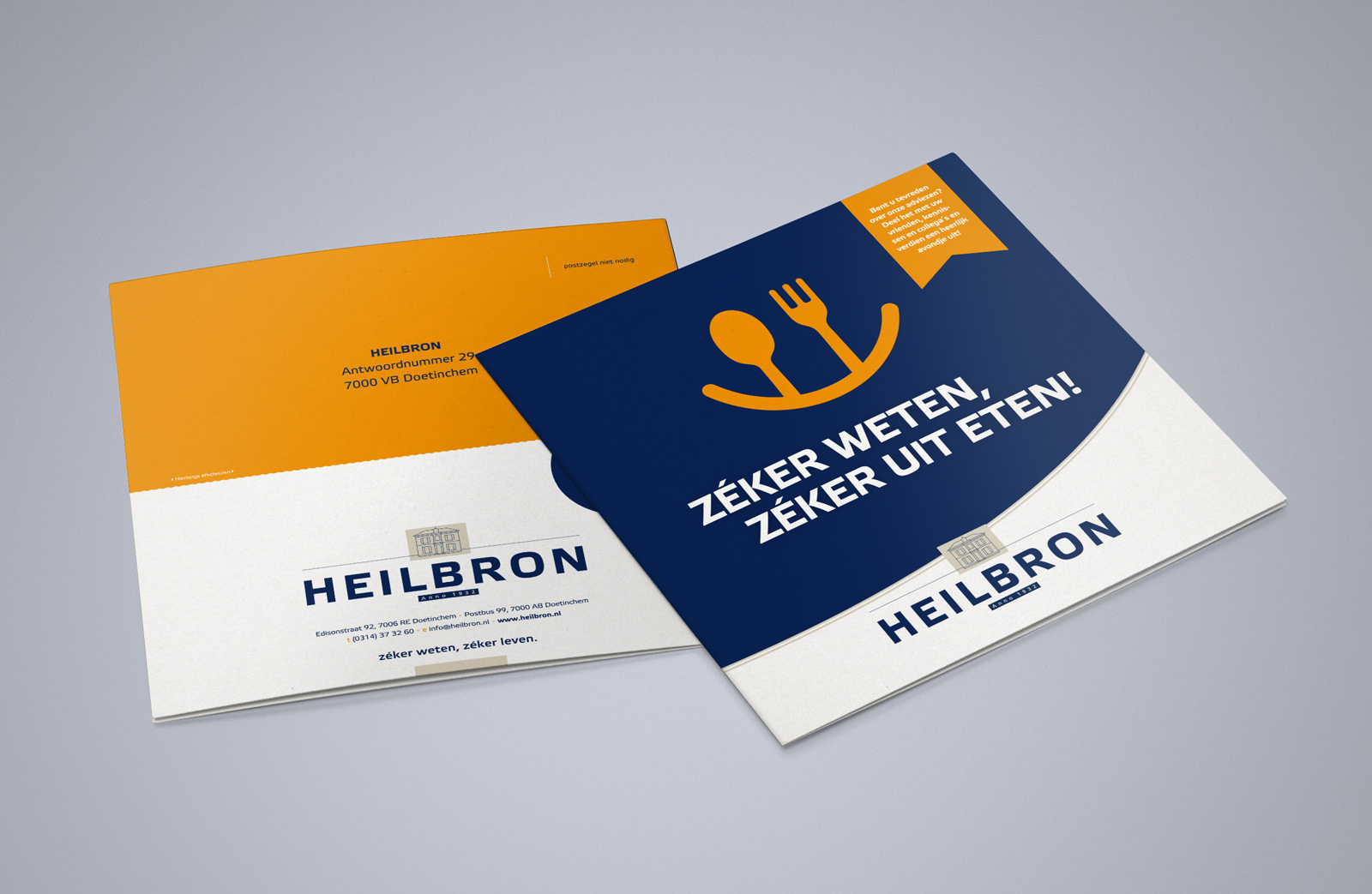 Om tevreden doorverwijzende klanten van Heilbron te bedanken geeft de financieel adviseur graag een dinercheque cadeau. In deze beknopte folder met invulkaart en scheurstrook leggen we uit hoe die regeling in zijn werk gaat.