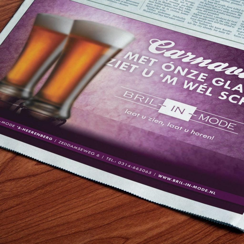 Alaaf! Speciaal voor komende carnaval ontwikkelde lekker in vorm voor Bril-in-Mode een inhakende advertentie met een knipoog.