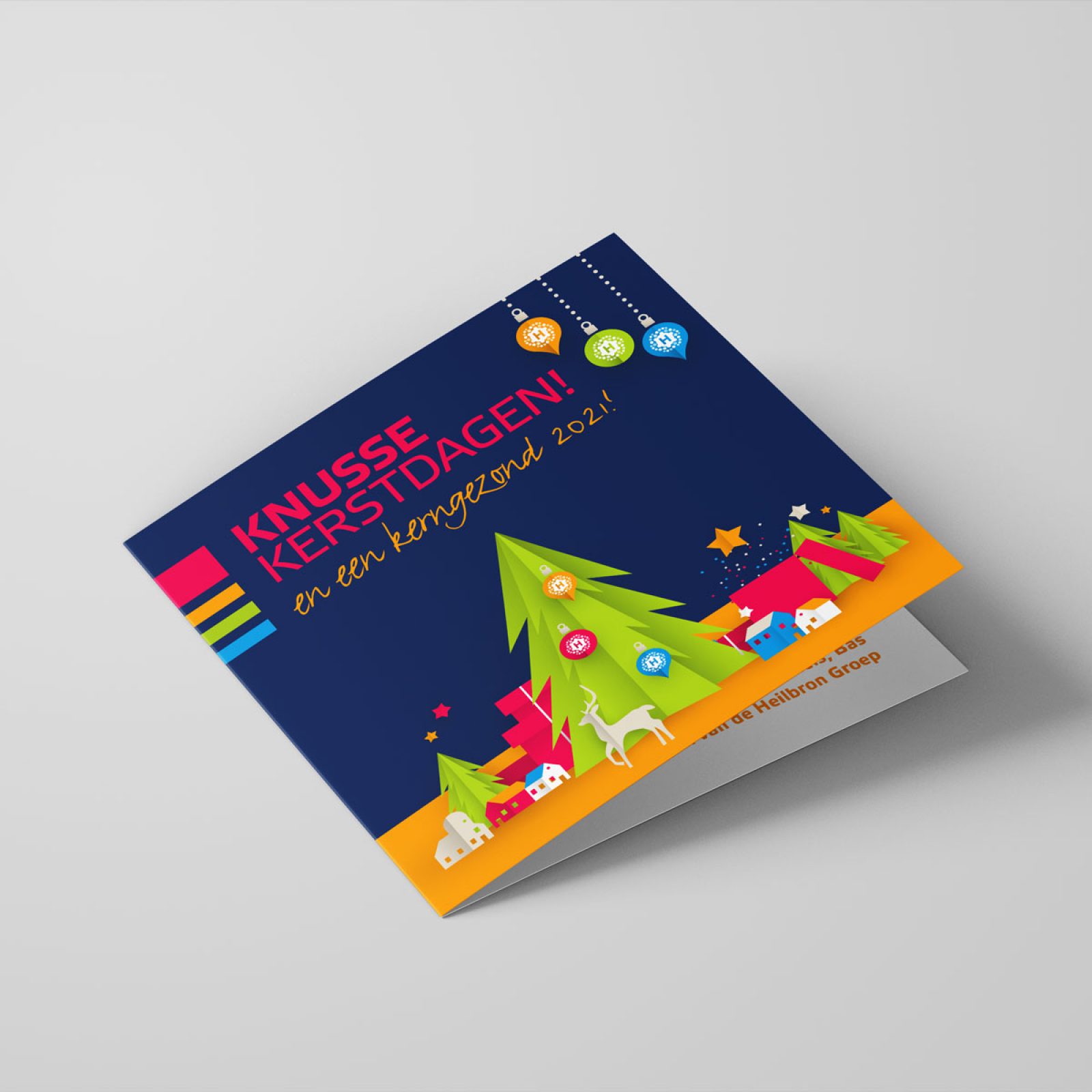 De Heilbron Groep wenst al haar medewerkers knusse kerstdagen toe. Bij lekker in vorm mochten we een sprankelende kerstkaart vormgeven op ice silver metallic papier, als begeleidend schrijven bij het kerstpakket.