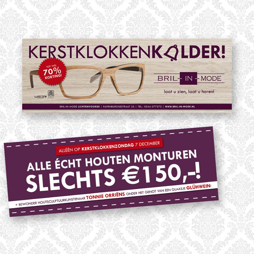 Elke eerste zondag na Sinterklaas is het Kerstklokkenzondag in Lichtenvoorde. Een evenement dat je niet mag missen. Met elk jaar weer verrassende nieuwe activiteiten, entertainment, muziek en een traditionele kerstmark. Ook het team van Bril-in-Mode Lichtenvoorde maakt er ieder jaar een speciale dag van. lekker in vorm verzorgde de grafische vormgeving van de actie.