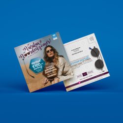 Bij lekker in vorm smolten we diverse elementen uit eerdere campagnes om tot een nieuw jasje om deze extra actiecampagne redelijk last minute te kunnen realiseren voor Bril-in-Mode. We maakten o.a. een DM kaart, advertentie en diverse items voor in de winkel, online en op social media.