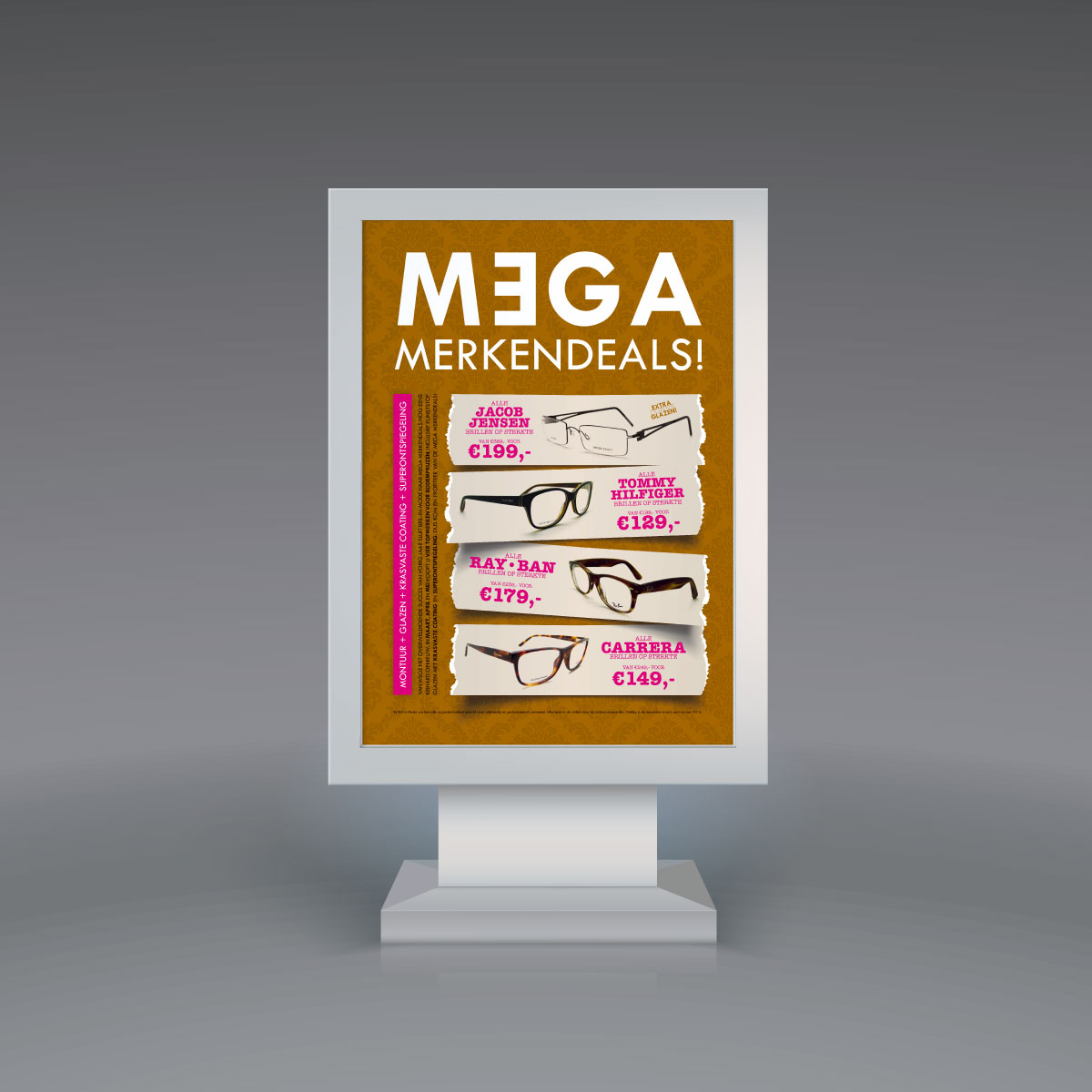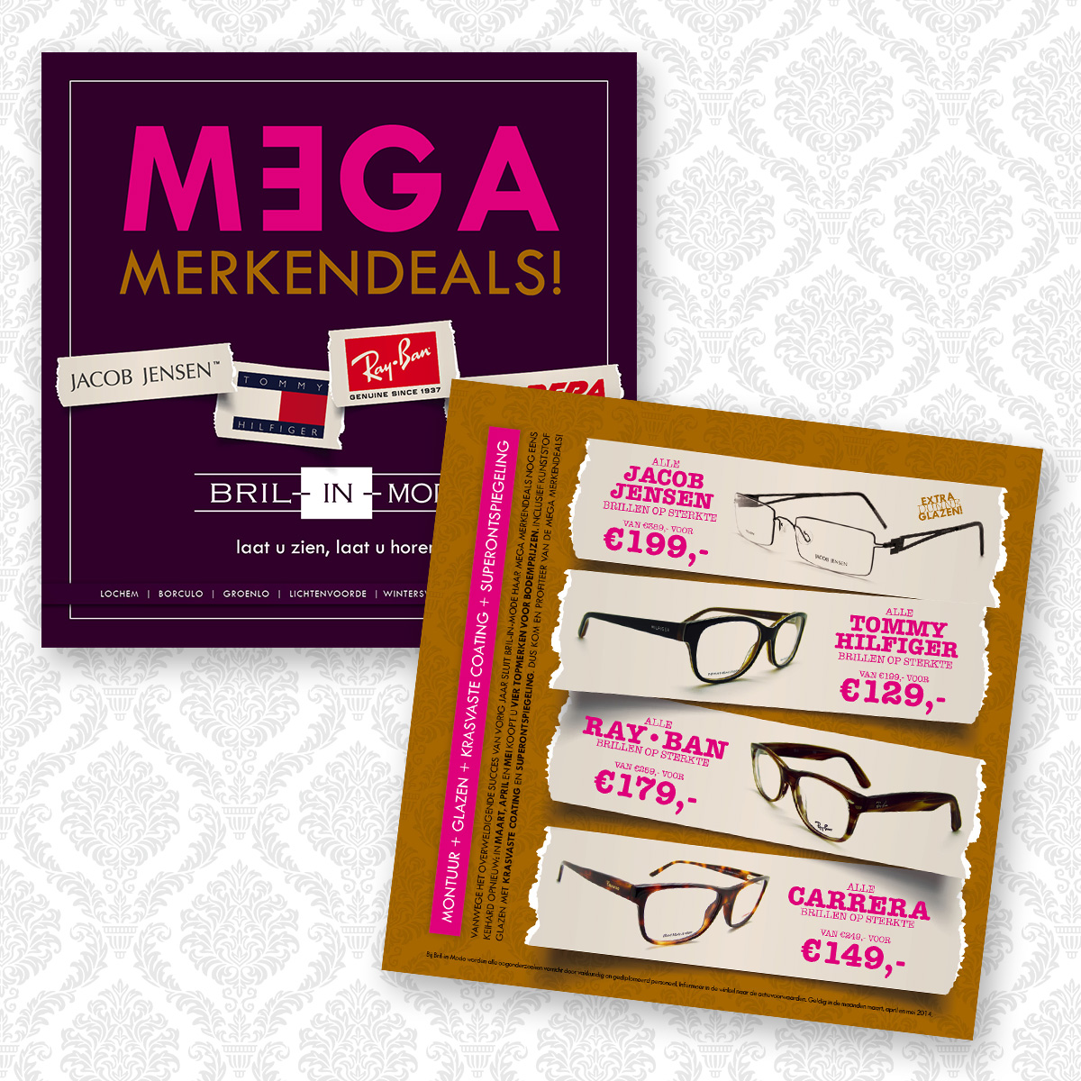 Het is actie bij Bril-in-Mode: Mega Merkendeals, met Jacob Jensen, Tommy Hilfiger, Ray-Ban en Carrera. De campagne wordt uitgebreid onder de aandacht gebracht via de Retina, huis-aan-huis flyers en diverse items in en rondom de winkel.