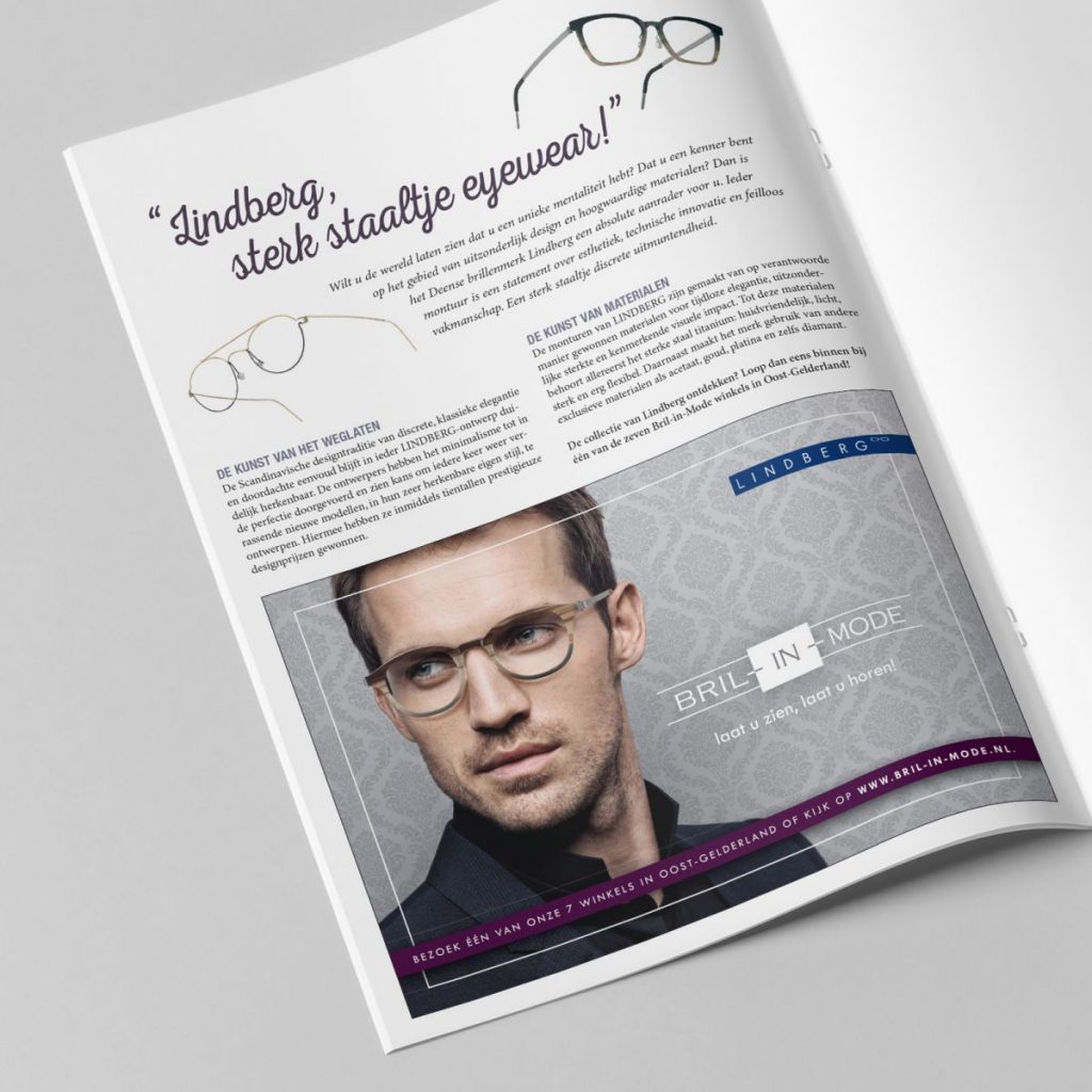 In de Gilsing Voorjaarskrant besteedt Bril-in-Mode ditmaal aandacht aan het mooie minimalistische merk Lindberg. Bij lekker in vorm verzorgden we de tekst en een bijpassende advertentie.