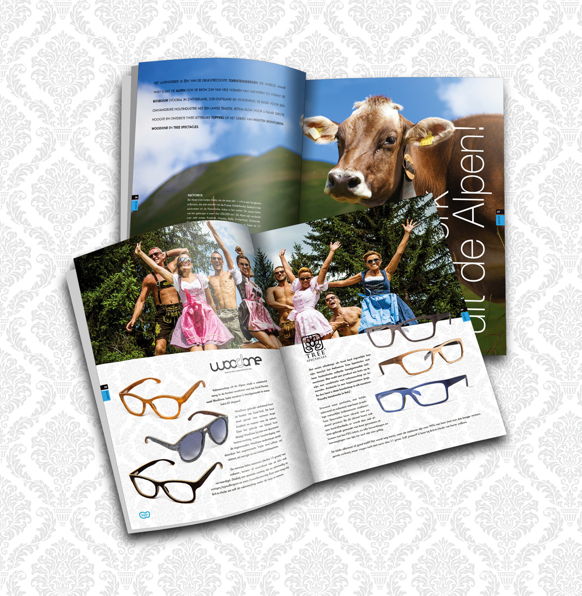 Bril-in-Mode geeft meerdere malen per jaar een eigen magazine uit, genaamd Retina. Hierin komen diverse trends aan bod, maar er is ook uitgebreid aandacht voor hoogwaardige oogzorg. lekker in vorm verzorgt niet alleen de opmaak, maar ook de eindredactie en eventuele productfotografie. In deze uitgave staat o.a. vakwerk uit de Alpen centraal: echt houten monturen van WooDone en Tree Spectacles.
