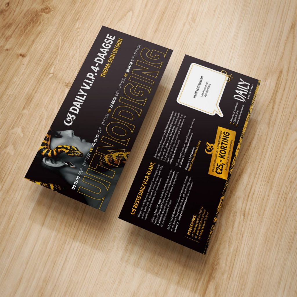 Bij lekker in vorm verzorgden we het ontwerp en de creatieve teksten van deze campagne, in de vorm van een uitnodiging c.q. kortingskaart, een stoepbordposter, social media posts, een salesbordje en een digitale nieuwsbrief om alvast een plaats mee te reserveren.